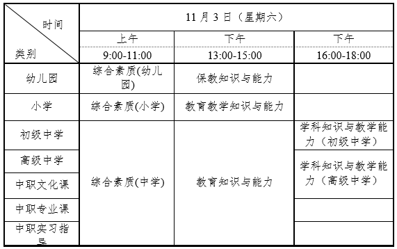 2018下半年湖南中小学教师资格证笔试报名时间公告 根据教育部考试中心《关于2018年下半年中小学教师资格考试考务相关事项的通知》(教试中心函〔2018〕114号)要求,现将我省2018年下半年中小学教师资格考试(笔试)有关事项公告如下: 一、考试科目与时间 1.幼儿园教师资格考试笔试科目一为综合素质(幼儿园),科目二为保教知识与能力。 2.小学教师资格考试笔试科目一为综合素质(小学),科目二为教育教学知识与能力。 3.初级中学教师资格考试笔试科目一为综合素质(中学),科目二为教育知识与能力,科目三为学科知识与教学能力。初级中学“学科知识与教学能力”科目分为语文、数学、英语、物理、化学、生物、思想品德、历史、地理、音乐、体育与健康、美术、信息技术、历史与社会、科学等15个学科。 4.高级中学教师资格考试笔试科目一为综合素质,科目二为教育知识与能力,科目三为学科知识与教学能力。高级中学“学科知识与教学能力”科目分为语文、数学、英语、物理、化学、生物、思想品德、历史、地理、音乐、体育与健康、美术、信息技术、通用技术等14个学科。 5.申请中等职业学校文化课教师资格的人员参加高级中学教师资格考试。 6.申请中等职业学校专业课和实习指导教师资格人员参加高级中学教师资格考试笔试“综合素质”和“教育知识与能力”两科考试。“学科知识与教学能力”考试纳入面试环节进行考查。 7.从2017年下半年考试开始,对音体美专业考试的笔试公共科目一、科目二(科目代码:201、202、301、302)实行单独编码(相应科目代码:201A、202A、301A、302A),考试内容暂与原科目相同。小学、初中、高中、中职文化课类别的音体美专业考生在笔试报名时应按照新编码的科目报考。取得科目201A、202A合格的考生,面试仅限于参加小学类别音体美专业科目;取得科目301A、302A合格的考生,面试仅限于参加初中、高中、中职文化课类别音体美专业科目。考生已获得科目201、202、301、302合格成绩,且成绩在有效期内的,可相应替代科目201A、202A、301A、302A合格成绩;考生已获得科目201A、202A、301A、302A合格,不可替代科目201、202、301、302合格成绩。 8.从2017年下半年考试开始,在小学类别新增的“心理健康教育”、“信息技术”、“小学全科”,在初中、高中、中职文化课新增的“ 心理健康教育”、“日语”、“俄语”学科。上述新增科目,笔试不考,仅在面试中考核,通过该类别“科目一”和 “科目二”的考生,面试报名时可以直接报考。 二、报考条件 (一)符合以下基本条件的人员,可以报名参加教师资格考试: 1.具有中华人民共和国国籍; 2.遵守宪法和法律,热爱教育事业,具有良好的思想品德; 3.符合申请认定教师资格的体检标准; 4.符合《教师法》规定的学历要求。 (1)幼儿园教师资格,应当具备幼儿师范学校毕业及以上学历。 (2)小学教师资格,应当具备中等师范学校毕业及以上学历。 (3)初中教师资格,应当具备高等师范专科学校或者其他大学专科毕业及以上学历。 (4)高级中学和中等职业学校教师资格,应当具备高等师范院校本科或者大学本科毕业及以上学历。 (5)中等职业学校实习指导教师资格,应当具备中等职业学校毕业及以上学历,并应当具有相当助理工程师以上专业技术职务或中级以上工人技术等级。 (二)考生应在户籍、学籍或人事关系所在市州报名参加中小学教师资格考试。普通高等学校毕业及其毕业前一年级学生,以及在校全日制研究生,可凭学校学籍管理部门出具的在籍学习证明报考,在就读学校所在地报名参加中小学教师资格考试。 (三)2015年12月31日前已入学的全日制普通高校师范类专业学生,可以持毕业证书申请直接认定相应的中小学教师资格。但所申请中小学教师资格的任教学科与所学专业不相同或不相近的,需参加中小学教师资格考试。所有非师范教育类专业毕业人员及2016年1月1日以后入学的师范教育类专业学生,申请中小学教师资格都需要参加中小学教师资格考试。 (四)被撤销教师资格的,5年内不得报名参加考试;受到剥夺政治权利,或故意犯罪受到有期徒刑以上刑事处罚的,不得报名参加考试。曾参加教师资格考试有作弊行为的,按照《国家教育考试违规处理办法》(教育部令第33号,下同)的相关规定执行。 三、报名方式、流程和准考证打印 1.日程安排 2018年下半年中小学教师资格考试笔试考生报名日期为9月4日至9日;考生网上缴费截止日期为9月14日;考生打印准考证时间为10月29日至11月3日。 2.报名流程 考生本人从报名网站(中小学教师资格考试网http://ntce.neea.edu.cn)首页“报名流程”入口点击进入报名系统页面→注册→登录网上报名系统→笔试报名→选择考区(市、州)→选择类别→选择科目→完成网上填报报名信息→等待网上审核→审核通过考生再次登录网上报名系统在线支付考试费(完成笔试报名确认)→安全退出。 3.报名具体步骤 第一步,登录“中小学教师资格考试网”(http://ntce.neea.edu.cn)。 第二步,注册。(每次)笔试报名前,考生须(重新)注册(帐号为本人身份证号)。注册时,要求考生填写姓名、选择证件类型、填写证件号码等信息。完成注册后,按照流程先仔细阅读并确认后签署《诚信考试承诺书》(电子版),承诺遵守考试纪律,违反考试纪律时,按照《国家教育考试违规处理办法》接受教